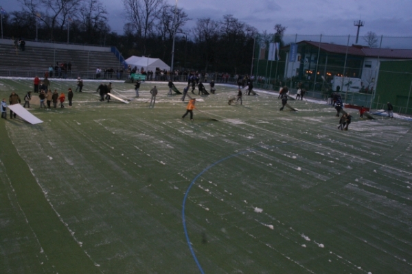 Innerhalb einer Stunde wurde der Kunstrasen komplett geräumt